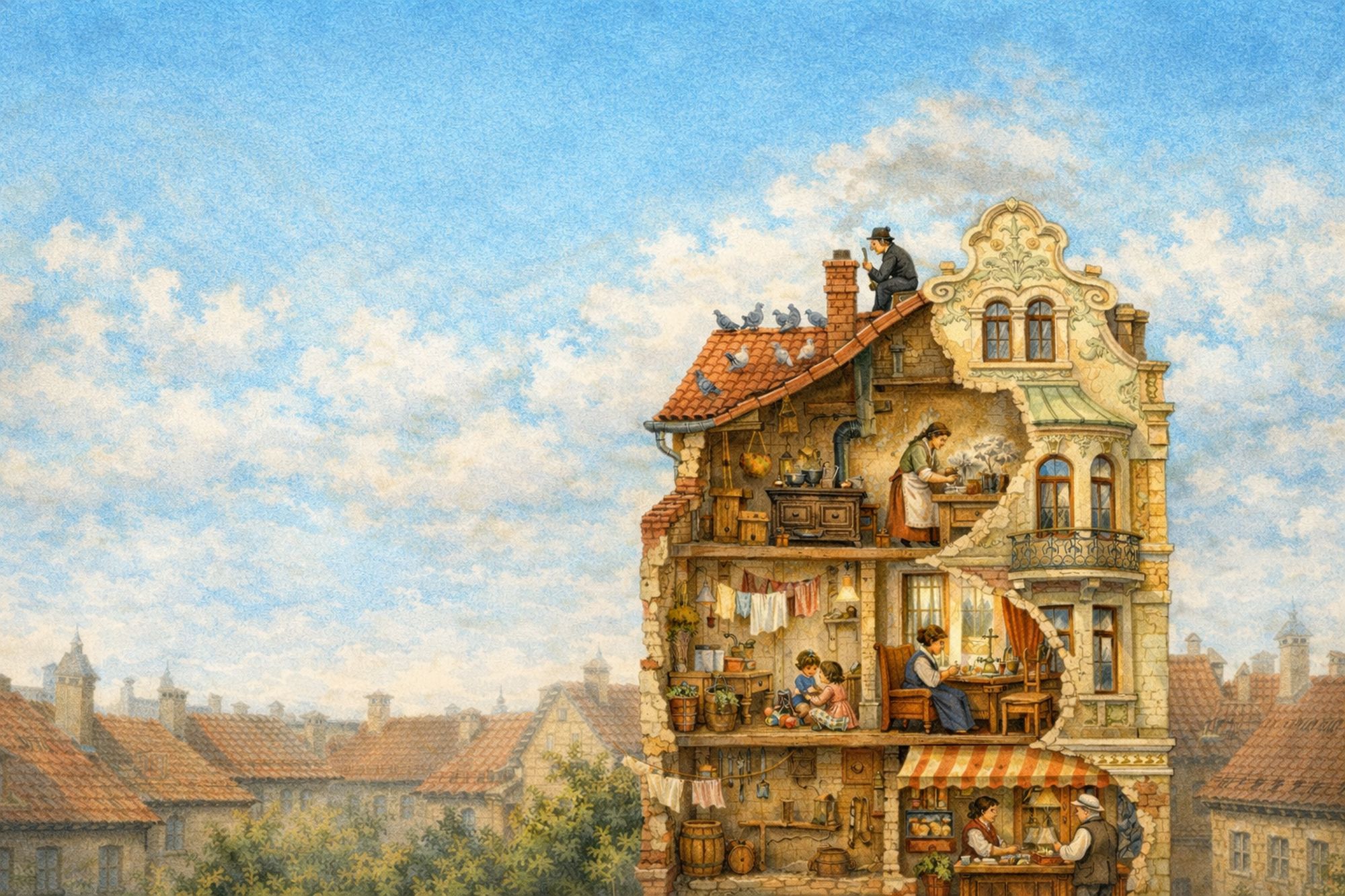 Dům. Slovo všední a samozřejmé – a přitom plné významů. Je to střecha nad hlavou, domov, místo bezpečí, ale také prostor pro práci a obživu. Dům může být symbolem bohatství a prosperity, ale i rodinné pospolitosti i společenských proměn. Je to základní stavební jednotkou města – a zároveň jeho paměť.